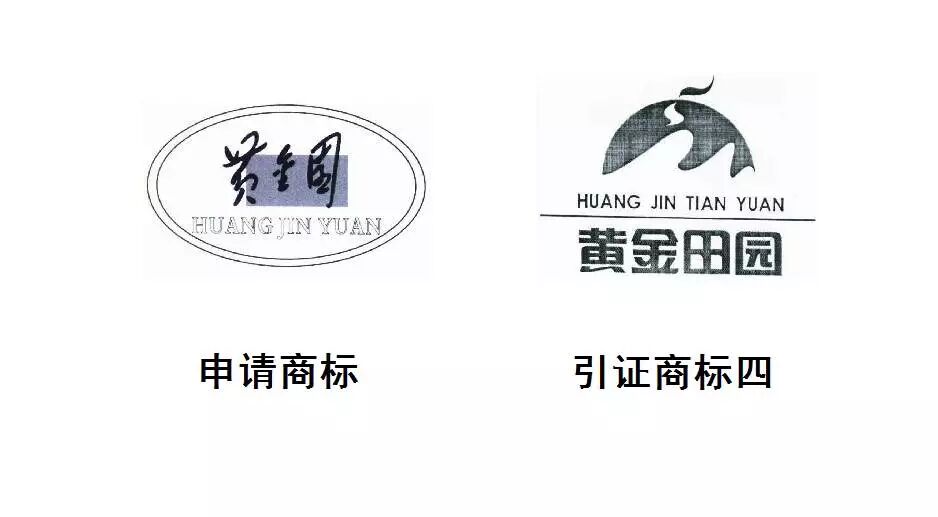 2014年12月5日,商標評審委員會作出商評字[2014]第96423號《關(guān)于第11477360號“黃金園HUANG JIN YUAN及圖”商標駁回復(fù)審決定書》(簡稱被訴決定),認為申請商標與引證商標二、三、四構(gòu)成使用在同一種或類似商品上的近似商標。商標評審委員會決定:申請商標在復(fù)審商品上的注冊申請予以駁回。