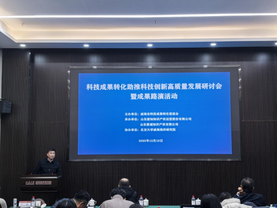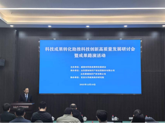 12月19日,由威海市科技成果轉化促進會主辦、山東惠知知識產權運營股份有限公司和山東惠誠知識產權有限公司聯(lián)合承辦的“科技成果轉化助推科技創(chuàng)新高質量發(fā)展研討會”在北京大學威海海洋研究院成功舉辦。